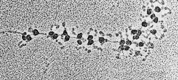 Electronographie d'un polysome au cours d'une synthèse protéique