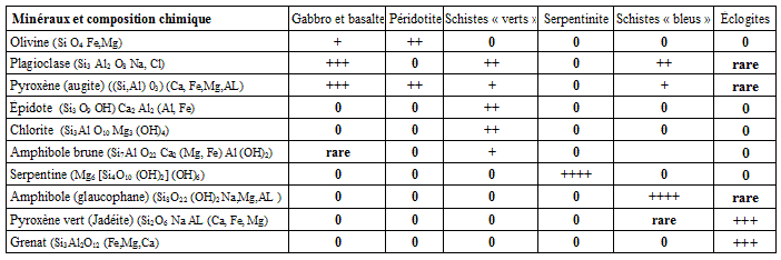 Compositions minéralogiques des principales roches de la lithosphère océanique
