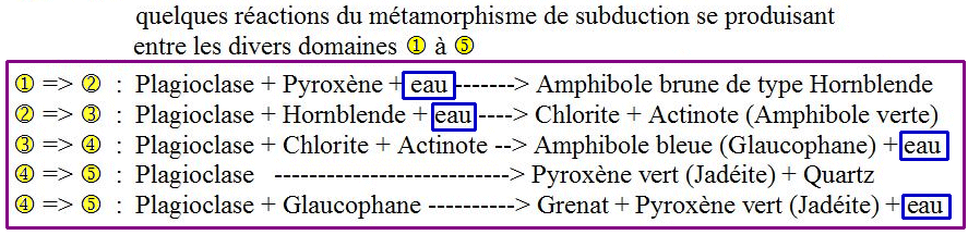 Quelques réactions chimiques se produisant entre les divers domaines du métamorphisme de la plaque subduite